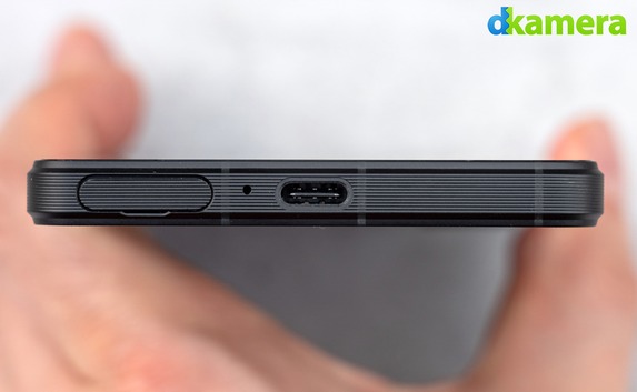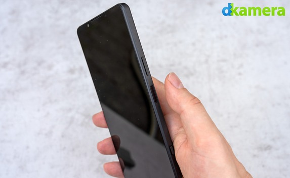 Beim Fingerabdrucksensor hat sich Sony wieder einmal für die Integration in der Powertaste und nicht im Display entschieden, Eingaben erkennt dieser stets treffsicher. Manchmal gibt es allerdings eine Gedenksekunde, bevor das Display aufleuchtet. Die Frontkamera ist beim Xperia 1 VI wie bekannt nicht im Display untergebracht, sondern befindet sich im schwarzen Rahmen knapp unterhalb der Oberseite.