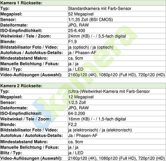 Deutlich größer und höher aufgelöst ist der Chip der Hauptkamera. Hier nutzt Sony einen Exmor T Chip im 1/1,35-Zoll-Format mit 52 Megapixel, zur Bildaufnahme werden allerdings nur 48 Megapixel verwendet. Bilder lassen sich mit 12 Megapixel sowie mit voller Auflösung ausgeben, zudem gibt es einen verlustarmen 2-fach-Zoom. Das Objektiv der Hauptkamera besitzt eine kleinbildäquivalente Brennweite von 24mm, ist stabilisiert und verfügt über eine Blendenöffnung von F1,9.