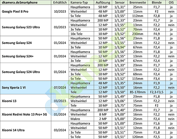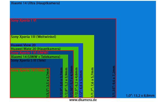 Als Nachteil des optischen Zooms muss die abfallende Lichtstärke erwähnt werden, diese sinkt von F2,3 (85mm) auf F3,5 (170mm) ab. Mit 170mm KB-Brennweite hat das Sony Xperia 1 VI allerdings eine längere Brennweite als die meisten anderen Smartphones am Markt zu bieten. Die geringere Lichtstärke sehen wir daher nicht wirklich als Nachteil. Beim Bildwandler der Telekamera handelt es sich um einen Exmor RS-Chip im 1/3,5-Zoll-Format, dessen Auflösung liegt bei 12 Megapixel. Die Bildpunkte messen daher nur 1µm.