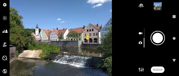 Letztere umfassen den Weißabgleich (u. a. Auto, Sonne und Glühlampe), die Belichtungskorrektur (-+ 2), die ISO-Empfindlichkeit (genaue Werte von der Kamera abhängig), die Belichtungszeit (1 Sekunde bis 1/4.000 Sekunde) und den Fokus (AF oder MF). Dieses Angebot an Optionen kann sich sehen lassen. Wenig intuitiv ist dagegen, dass im Videomodus der Button für manuelle Einstellungen zu sehen ist, dieser jedoch das Smartphone zum Fotomodus wechseln lässt. Das ergibt keinen Sinn.