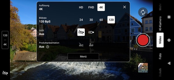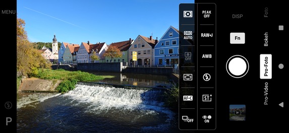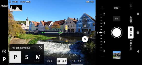 Sehr gut gefällt uns dagegen wieder, dass sich die Display- sowie die Fn-Taste der App frei konfigurieren lassen und auch ein Histogramm sowie eine Wasserwaage zur Kontrolle zur Verfügung stehen. Dadurch sowie durch den "echten" Auslöser bietet das Sony Xperia 1 VII so viel Kamera-Feeling wie fast kein anderes Smartphone am Markt.