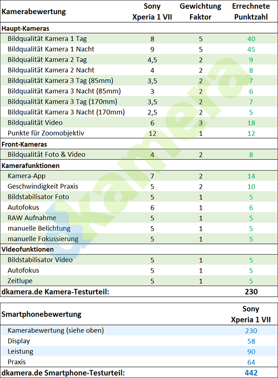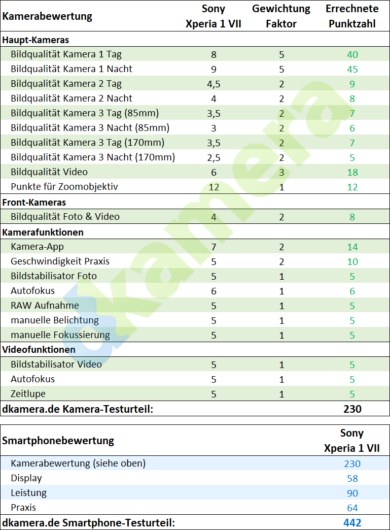 Die dkamera.de-Awards des Smartphones Sony Xperia 1 VII :