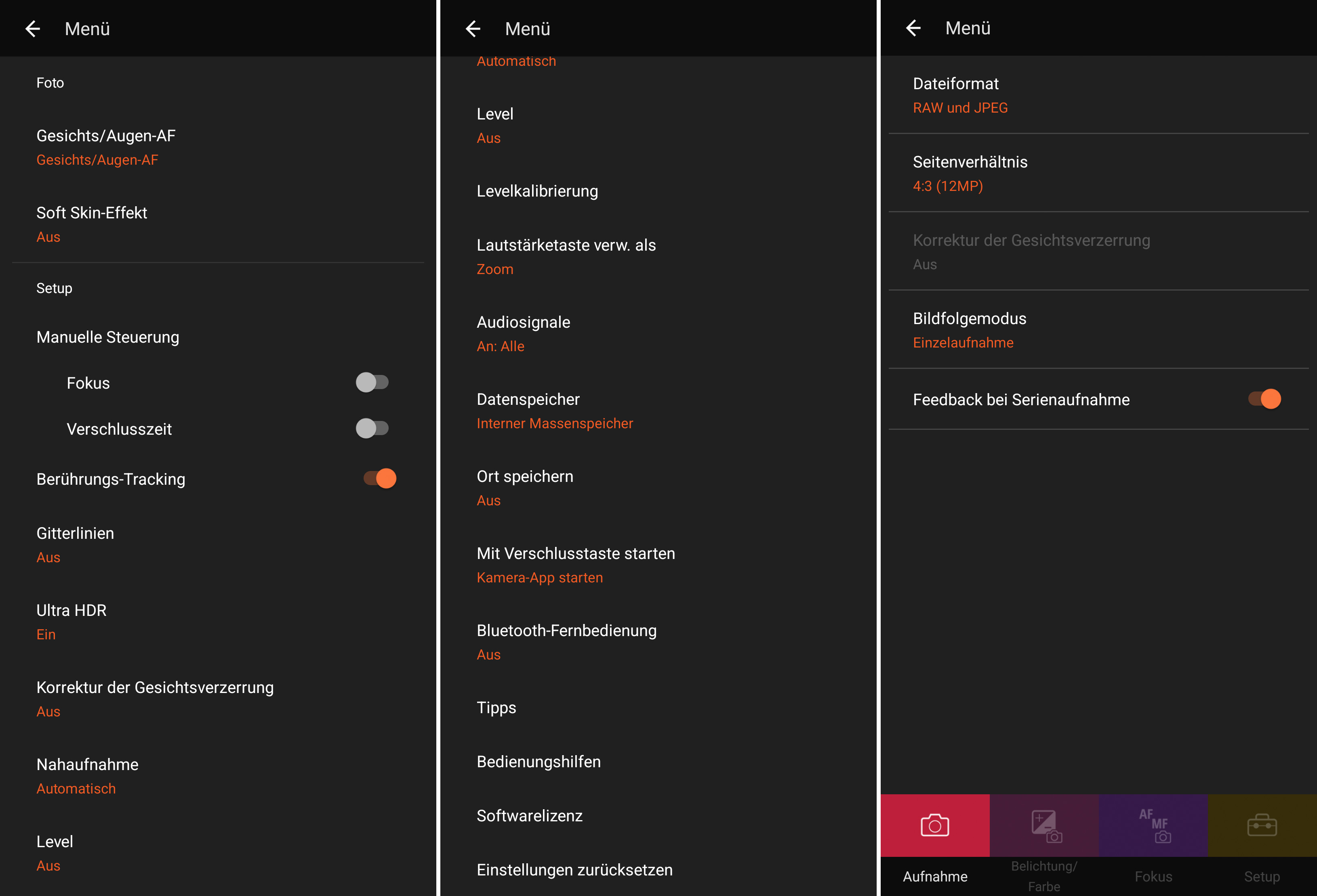 Beim Pro-Foto-Modus lassen sich die Parameter selbst bestimmen: