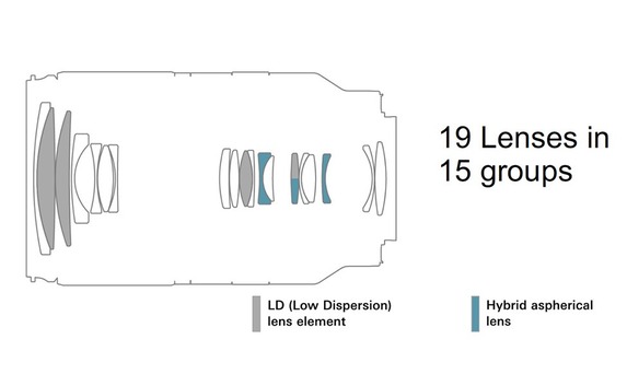 Der optische Bildstabilisator macht Aufnahmen aus der Hand möglich, bei Kameramodellen ohne eigenen Stabilisator ist der „VC“ besonders wichtig. Beim optischen Design hat sich Tamron für 19 Linsen in 15 Gruppen entschieden. Drei hybrid-asphärische Linsen und vier LD-Elemente (Low Dispersion) reduzieren Abbildungsfehler, laut Tamron soll die Bildqualität auch am Rand hoch ausfallen.