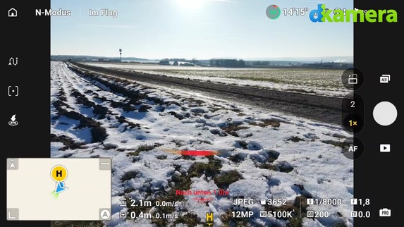 In puncto Akkulaufzeit bewegt sich die Mini 5 Pro mit rund 25 Minuten auf einem ordentlichen Level, während eines Fluges lassen sich diverse Videos und Bilder aufnehmen. Die von DJI genannten 36 Minuten (unter optimalen Bedingungen versteht sich), sind in der Praxis aber wohl kaum zu erreichen. Das sollte Besitzer der Kameradrohne jedoch kaum stören. Mit einem zweiten oder gar dritten Akku (wie bei der Fly More Combo) kann man auch längere Einsätze – mit Unterbrechungen – realisieren. Dank der hohen Leistungswerte ist man schließlich sehr schnell wieder zum Ziel zurückgekehrt.