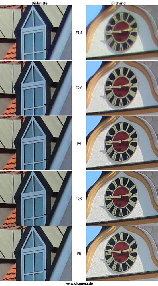 Auflösungsvergleich bei Blende F1,8 bis F8: