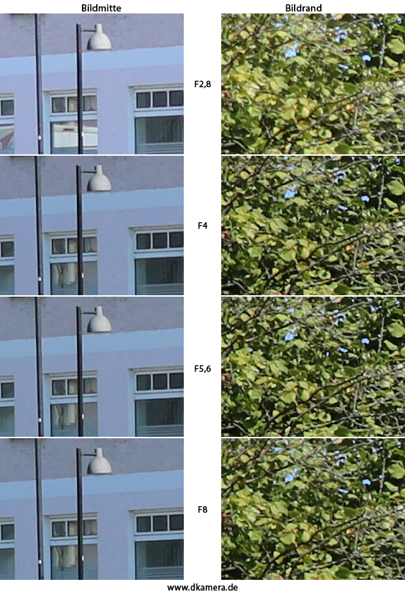 Auflösungsvergleich von Blende F2,8 bis F8:
