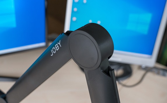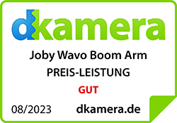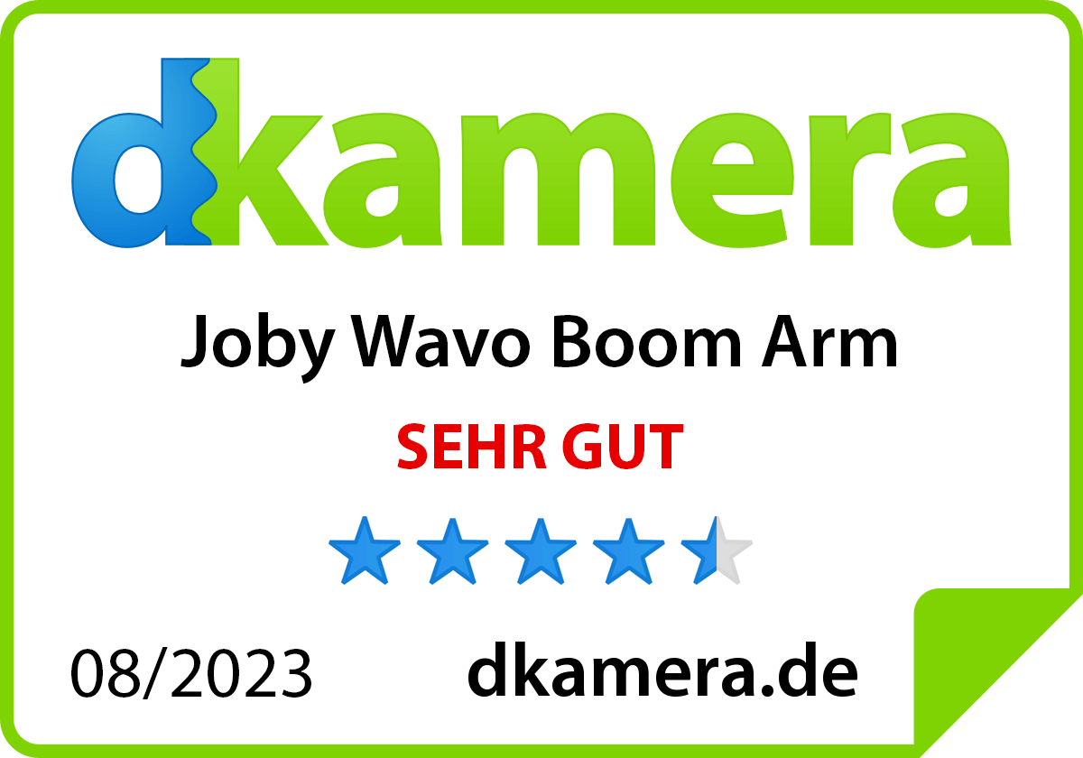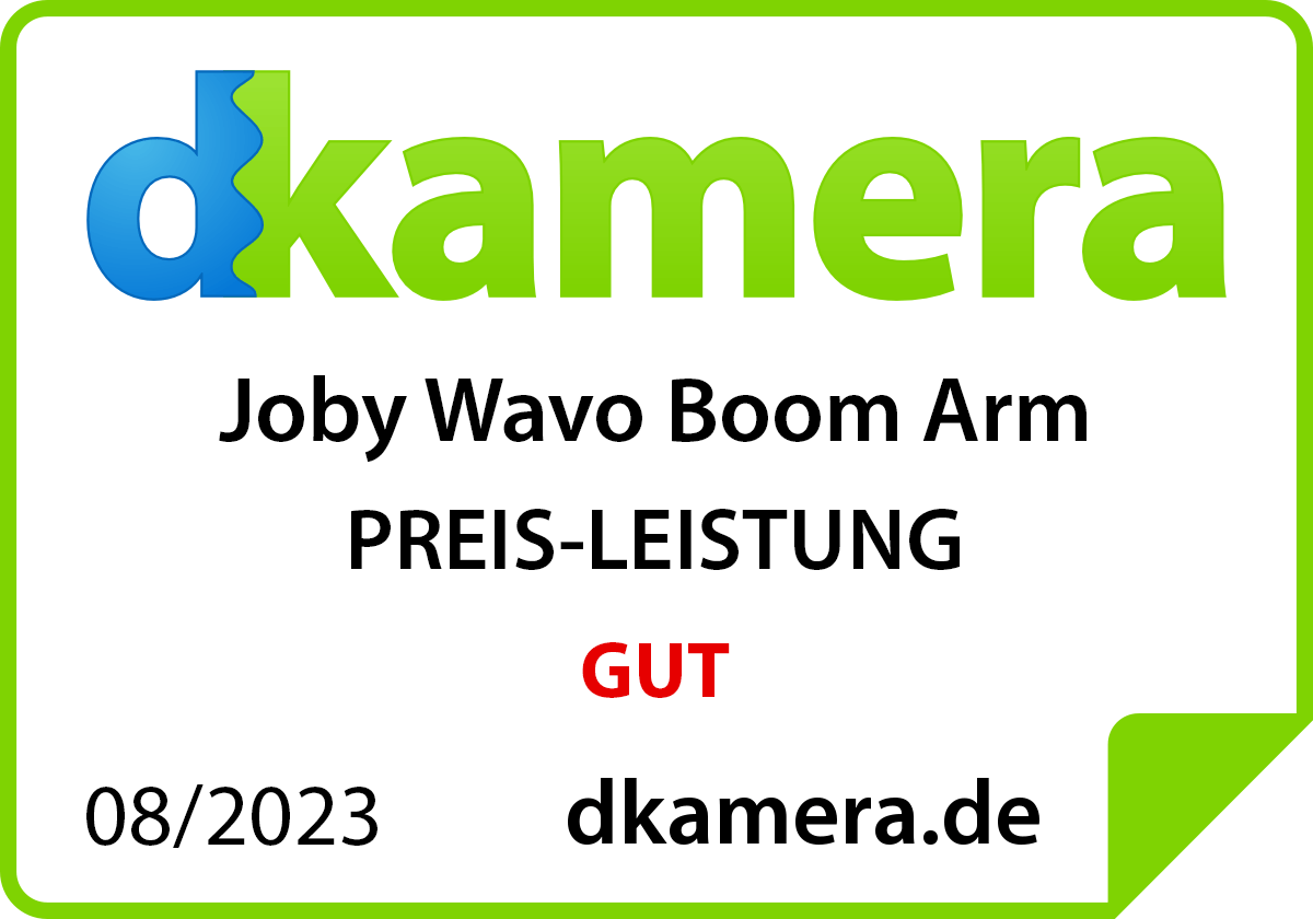 Als weiteres Zubehör lässt sich von Joby der Wavo Boom Arm erwerben. Dies ist eine Universalbefestigung für Mikrofone und Kameras mit einer Traglast von bis zu einem Kilogramm. Beim Material handelt es sich um Aluminium und Kunststoff, die Armlänge wird mit 87cm angegeben. Die Montage des Arms erfolgt per Klemmvorrichtung. Drei Gelenke ermöglichen das Drehen, ein Kugelkopf die Ausrichtung des montierten Mikrofons. Im Arm lässt sich das Mikrofonkabel verlegen, dadurch bleibt man an diesem nicht hängen. Zudem hat Joby an einen Getränkehalter und einen Halter für Kopfhörer gedacht.