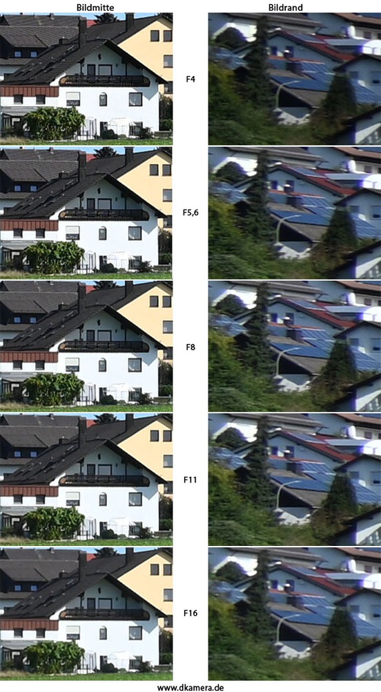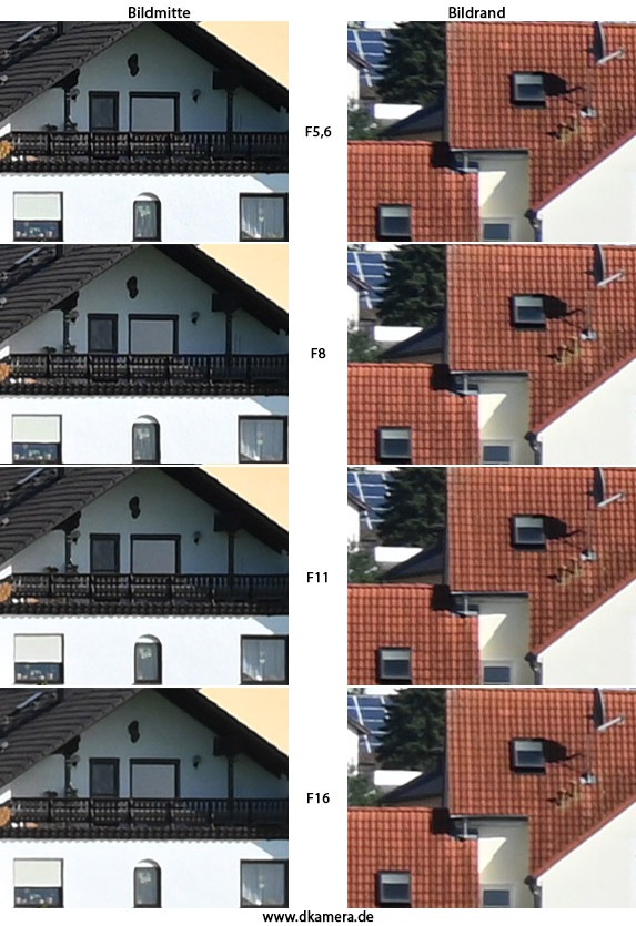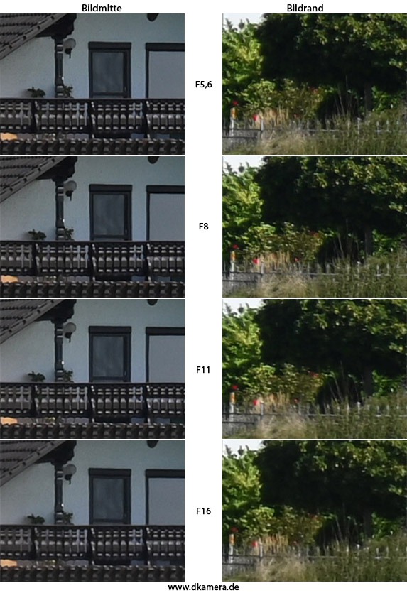 Für die Bildqualität gilt: Bei 24mm muss man für randscharfe Aufnahmen und eine nicht störende Vignettierung ganz klar die Wahl eines Blendenwertes abseits der Offenblende empfehlen, mit F5,6 oder F8 lässt sich aber gut arbeiten. An der Abbildungsleistung im Zentrum kann man dagegen nichts kritisieren, diese fällt sehr gut aus. Für die anderen Brennweiten gilt: In der Mitte ab Offenblende sehr gut, an den Rändern gut. Leichtes Abblenden sorgt meistens noch für einen Tick mehr Details.