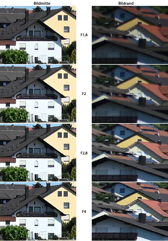 Bei der größten Öffnung von F1,8 löst das Nikkor Z 24mm F1,8 S im Zentrum viele Details auf, die Schärfe kann sich sehen lassen. Zum Rand hin nimmt das Auflösungsvermögen dagegen sichtbar ab. Abblenden ist für randscharfe Aufnahmen unumgänglich. Bei F2 legt die Schärfe sowohl in der Mitte als auch am Rand einen Tick zu, der Randabfall ist weniger stark. Auf F2,8 abgeblendet zeigt sich in der Mitte wieder eine leichte Verbesserung, am Rand ist der Sprung deutlich größer. Nun werden Details auch an den Rändern recht scharf abgebildet, F2,8 sind gut nutzbar. Eine fast perfekte Randwiedergabe erreicht man ab F4. Das Schärfe-Optimum liegt in der Mitte zwischen F4 und F5,6, F8 und F11 sind ebenfalls sehr gut nutzbar. Ab F16 wirkt sich die Beugungsunschärfe sichtbar negativ auf die Detailwiedergabe aus. Die Räder sind ab F2,8 gut und ab F4 sehr gut.