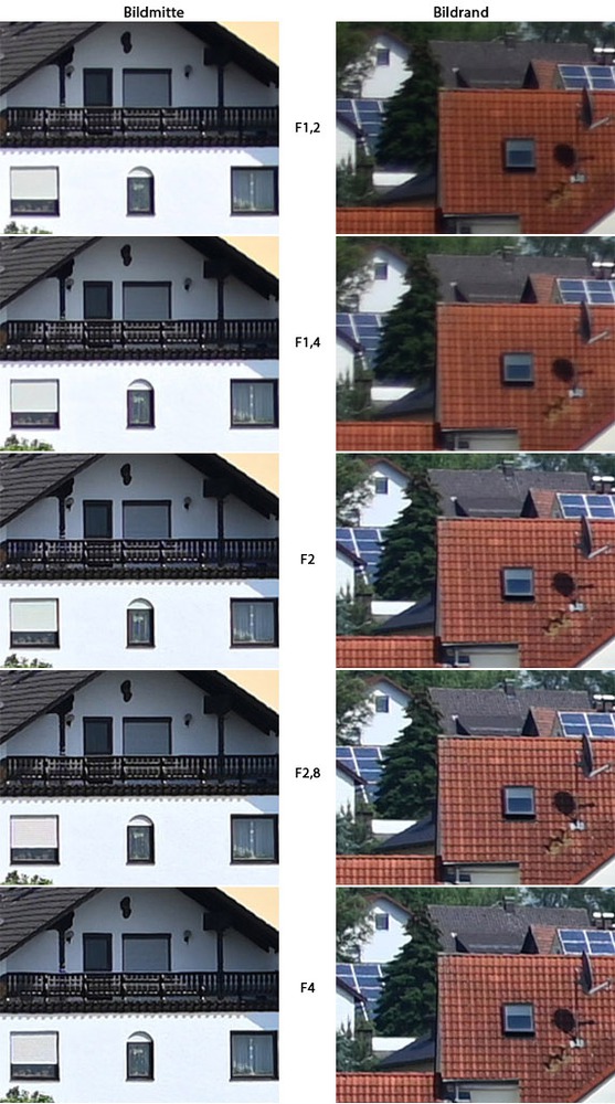 Bei F1,2 schneidet die Festbrennweite in der Bildmitte gut ab. Als knackig scharf kann man die Wiedergabe zwar nicht beschreiben, dies darf man bei F1,2 jedoch auch nicht erwarten. Bei Porträts – für die das Objektiv vor allem verwendet werden dürfte – sind F1,2 auf jeden Fall gut nutzbar. Bei F1,4 kann man die Qualität ein wenig steigern, ein großer Sprung ist allerdings erst bei F2 zu sehen. Hier stufen wir die Bildschärfe als sehr gut ein. Das weitere Schließen der Blende hebt die Qualität auf ein exzellentes Level, feine Details werden bei etwa F2,8 am besten wiedergeben. Die Beugung stört erst ab F16 stark, sichtbar wird sie allerdings schon bei F11. Die Bildränder liegen wie üblich hinter dem Zentrum zurück. Gerade bei F1,2 wirken sie bei der von uns zum Test verwendeten 100-Prozent-Ansicht sichtbar weich. Wer nicht ganz so stark hineinzoomt, kann sich allerdings nicht beklagen. Bei F1,4 legen die Ränder auf ein gutes Niveau zu, bei F2 auf ein sehr gutes. Von F2,8 bis F8 kann man die meisten Details herausholen, hier finden wir die Bildschärfe hervorragend. Eine perfekte optische Leistung sieht insgesamt betrachtet natürlich anders aus, maßgebend ist für ein Objektiv mit dieser Brennweite allerdings die Bildmitte. Die Randbereiche sollten in der Praxis praktisch nie in der Fokusebene liegen.