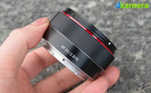 Dass Samyang beim Gehäuse nur auf Kunststoff setzt, hat aber auch einen Vorteil: das AF 35mm F2,8 FE fällt mit 85g extrem leicht aus. So leicht, dass man beim Festhalten eigentlich kaum glauben kann, ein Objektiv für Vollformatkameras in der Hand zu halten. Die Abmessungen von gerade einmal 6,2 x 3,3cm tragen zu diesem Eindruck ebenfalls bei. Wer Gewicht sparen möchte und zudem ein kompaktes Objektiv sucht, liegt beim Samyang 35mm F2,8 FE daher goldrichtig. Wer Objektive mit Metallgehäuse bevorzugt, wird mit der Festbrennweite dagegen nicht viel anfangen können.