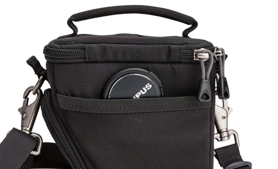 Da die Kamera im Think Tank Photo Digital Holster 5 mit dem Display nach oben verstaut wird, kann ein Displayschutz über das Display gelegt werden. In Taschen auf der Vorder- und der Innenseite lässt sich weiteres Zubehör unterbringen.
