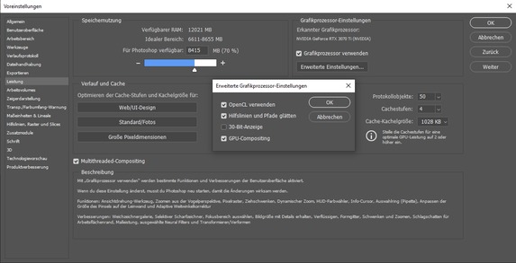 Das Photoshop-Update bringt neue Einstellungen zum Beschleunigen der Berechnungen mit: