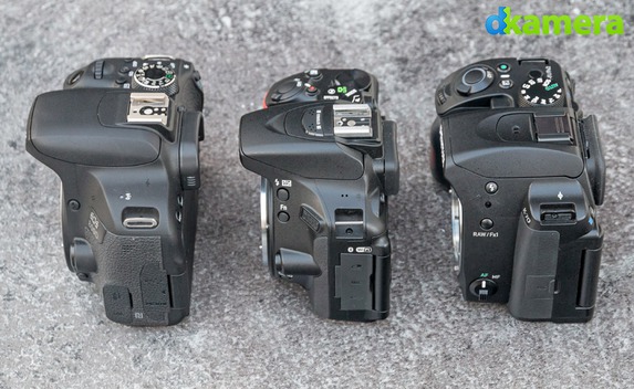 Mit Abmessungen von 3,2 Zoll (D5600) und 3,0 Zoll (800D sowie K-70) weichen die LCDs kaum voneinander ab, die Auflösungen sind mit 1,04 Millionen Subpixeln identisch. Ebenso gleich: Die Displays sind dreh- sowie schwenkbar und somit in fast jeder Situation optimal einzusehen. Große Einblickwinkel erlauben des Weiteren die Ansicht von der Seite. Einen Unterschied gibt es bei den LCDs dann aber doch noch: Während sich die EOS 800D und die D5600 per Touch bedienen lassen, funktioniert dies mit der K-70 mangels Touchscreen nicht.