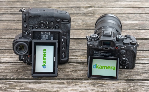 Die Bildkontrolle ist bei spiegellosen Systemkameras der Oberklasse grundsätzlich via elektronischem Sucher und mittels eines Displays möglich. Natürlich gilt dies auch für die drei Modelle in diesem Vergleich. Alle drei Hersteller nutzen im Sucher ein OLED-Panel, die Auflösungen und weiteren Daten weichen aber deutlich voneinander ab. Das Modell mit den meisten Pixeln und der höchsten Bildrate hat die Sony Alpha 1 zu bieten. Sie verfügt über ein OLED-Panel mit 9,44 Millionen Subpixel und einer Wiedergabe von bis zu 240 Bildern pro Sekunde. Die bestmögliche Sucherqualität steht bei 240 Bildern pro Sekunde allerdings nicht zur Verfügung, dafür muss man auf 120 Bilder pro Sekunde „zurückschalten“. Tragisch ist das im direkten Vergleich mit den anderen DSLMs jedoch nicht, diese schaffen grundsätzlich keine 240 Bilder pro Sekunde. Bei der EOS R3 kommt ein Panel mit 5,76 Millionen Subpixel und einer maximalen Bildfrequenz von 120 Bildern pro Sekunde zum Einsatz, Nikon nutzt bei der Z 9 ein 3,69 Millionen Subpixel auflösendes Panel mit 120 Bildern pro Sekunde (seit Firmware 2.0). Im direkten Vergleich gefällt uns das Sucherbild der Sony Alpha 1 am besten, dafür sorgt neben der höchsten Auflösung auch die 0,9-fache Vergrößerung. Das Einsehen der Bildecken fällt vor allem Brillenträgern hier aber schon sehr schwer.