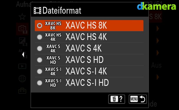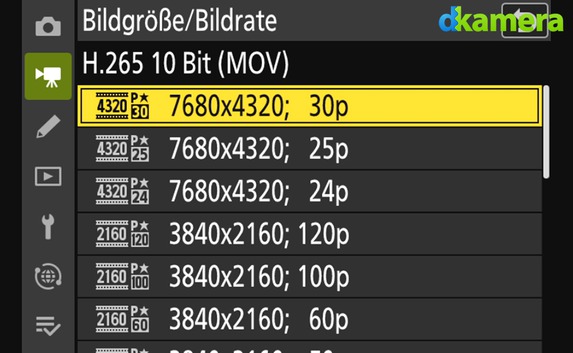 Mit der Nikon Z 9 lassen sich 4K- und 8K-Videos speichern (Screenshot vor dem FW-Update):