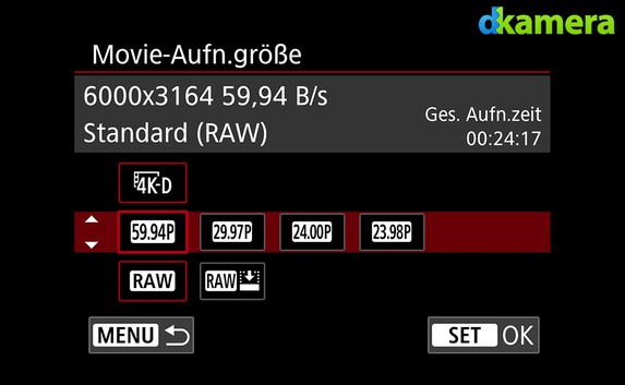 Die Canon EOS R3 hält Videos maximal in 6K-Auflösung fest: