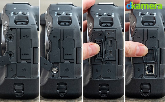 Die seitlichen Schnittstellen der Canon EOS R3: