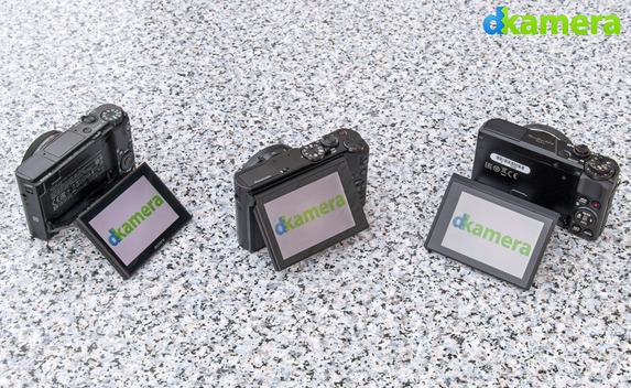 Die Bildkontrolle über das LCD ist bei allen drei Kameras möglich, die Displays sind sogar jeweils schwenkbar gelagert. Nach oben (180 Grad) und unten (40 Grad) können Fotografen das LCD bei der RX100 IV und G7 X Mark II schwenken, das Display der LX15 wurde nur nach oben (180 Grad) schwenkbar konstruiert. Selbstporträts unterstützen alle drei Modelle somit optimal, die Bildkontrolle bei Überkopfaufnahmen funktioniert bei der RX100 IV und der G7 X Mark II allerdings besser als bei der LX15. Grundsätzlich gilt für alle drei LCDs: Sie können durch große Einblickwinkel auch von der Seite problemlos eingesehen werden, liefern mit über 1 Million Subpixel eine scharfe Wiedergabeansicht und sind mit Diagonalen von 3,0 Zoll groß genug. Touchoberflächen finden sich nur bei der LX15 und der G7 X Mark II.