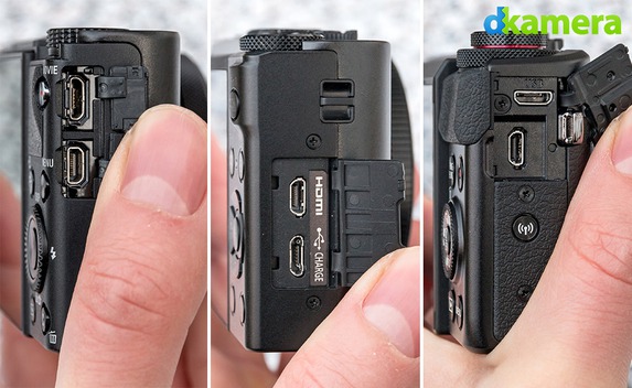Schnittstellen sind bei Kompaktkameras mangels Platz üblicherweise sehr wenige zu finden. Die drei Modelle in diesem Test stellen keine Ausnahme dar. So sind nur ein Micro-USB und Micro-HDMI-Port vorhanden. Mikrofone oder Blitzgeräte lassen sich somit nicht anschließen. Kleine integrierte Blitzgeräte gibt es dagegen schon, und die Tonaufnahme erfolgt jeweils mit dem integrierten Stereomikrofon.