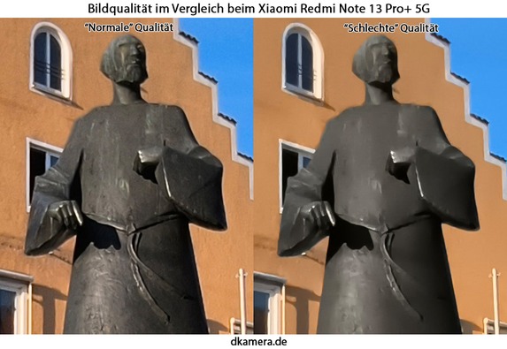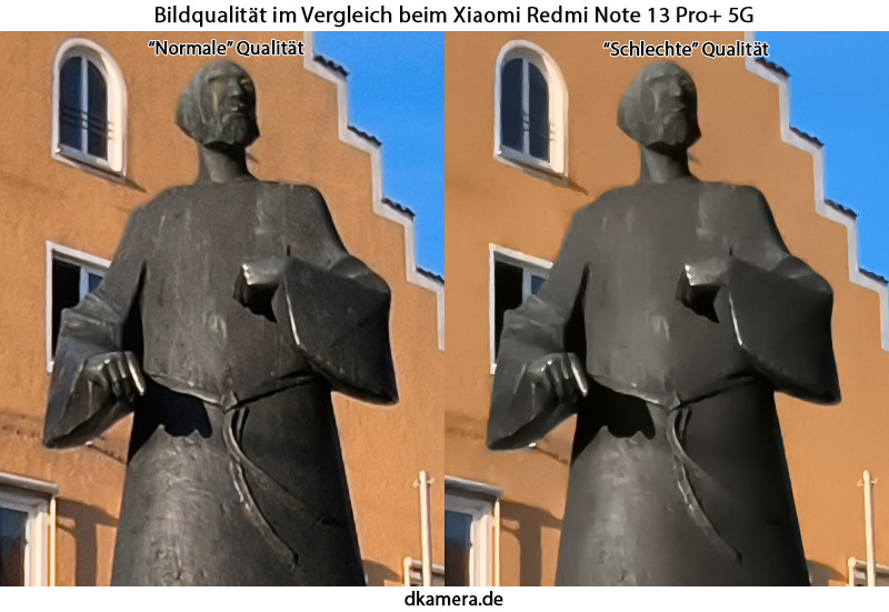 Ein Punkt, der am Ende zudem noch angesprochen werden muss, ist die inkonsistente Darstellungsqualität. Nicht alle Aufnahmen des Smartphones weisen die gleiche Qualität auf, teilweise sind die Bilder (unabhängig vom Motiv) stärker verwaschen (Ultraweitwinkelkamera) oder extrem stark scharfgezeichnet (Hauptkamera). Einen Grund dafür konnten wir nicht finden. Manchmal ist nur jedes vierte/fünfte/sechste Bild betroffen, manchmal auch jedes zweite. Da wir ein Testgerät der „ersten Stunde“ verwendet haben, hoffen wir auf die Problembehebung per Firmware-Update. Bei unserer Bewertung haben wir das Problem der inkonsistenten Bilder nicht einfließen lassen. Zum einen weil, man dies schlecht als Zahlenwert darstellen kann, zum anderen, weil es sich durch kommende Software-Updates lösen lässt. Umgehen kann man die Problematik zudem durch mehrere Aufnahmen des gleichen Motivs. Dies ist zugegebenermaßen aber nur eine suboptimale Lösung. Der Autofokus und die Bildstabilisierung des Xiaomi Redmi Note 13 Pro+ 5G arbeiteten im Test dagegen fehlerfrei, der Autofokus stellte dank Phasendetektion meistens sehr flott scharf.
