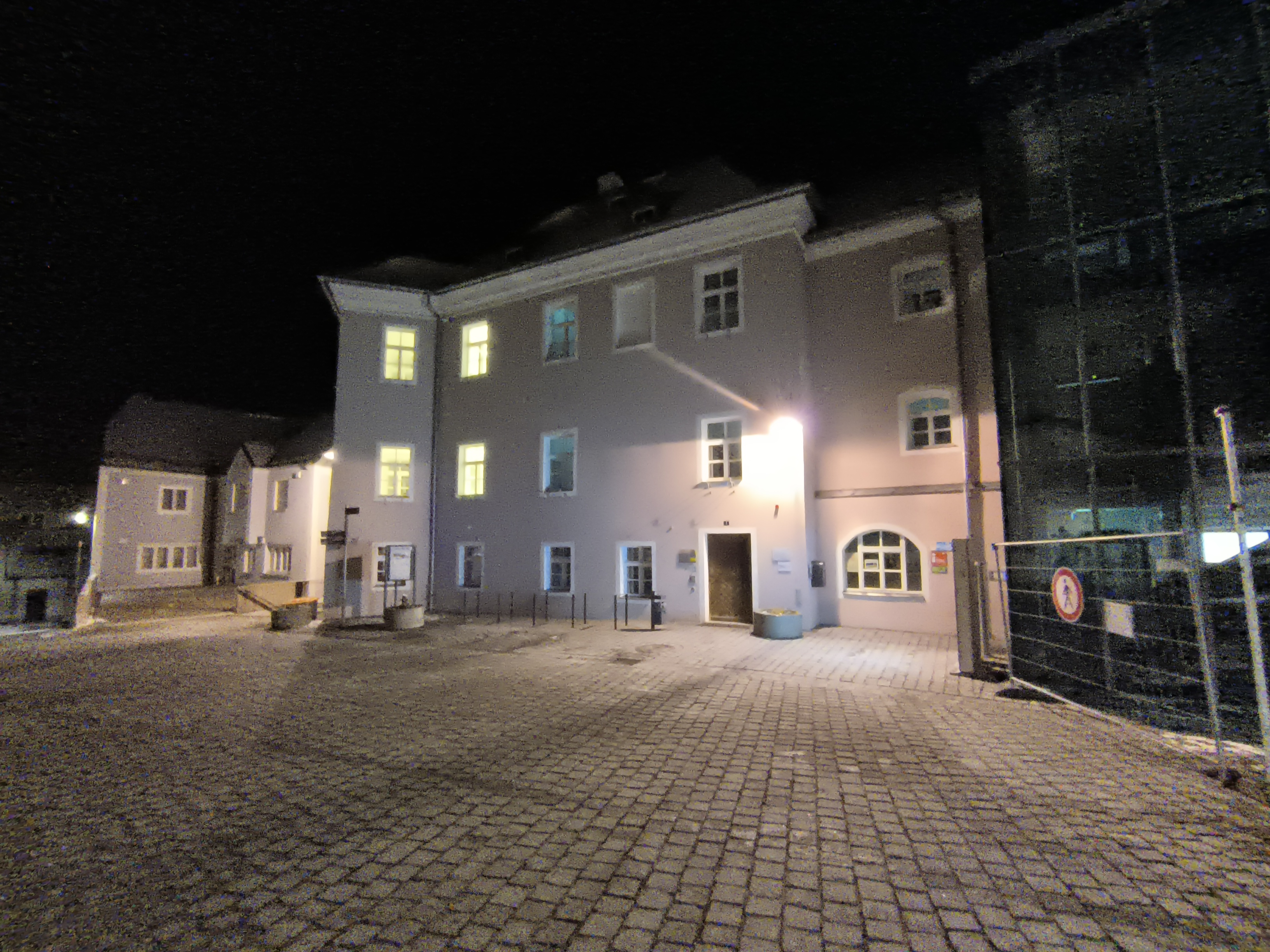 Bei Nacht fallen die Abstände zwischen den Kameras noch größer aus als bei Tag. Die Hauptkamera ist auch bei schlechten Lichtverhältnissen in der Lage, feine Details ohne störendes Bildrauschen wiederzugeben. Der Nachtmodus, der manuell oder automatisch ausgewählt werden kann und mehrere Fotos zu einem Bild zusammenrechnet, ist daher nur selten notwendig. Sind die Lichtverhältnisse nicht allzu schlecht, zeigen die klassischen Aufnahmen sogar noch etwas mehr Details. Das gilt auch für die 2-fach-Zoom-Option. Durchaus beeindruckend ist darüber hinaus die Bildqualität beim Verwenden der vollen Auflösung. Hier tritt zwar mehr Bildrauschen auf, Fotografen bekommen jedoch auch etwas mehr Details zu Gesicht. Grundsätzlich würden wir bei Nacht trotzdem auf 200-Megapixel-Bilder verzichten, der Mehrwert gegenüber Bildern mit 12,5 Megapixel ist gering.