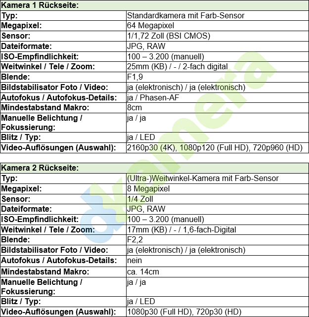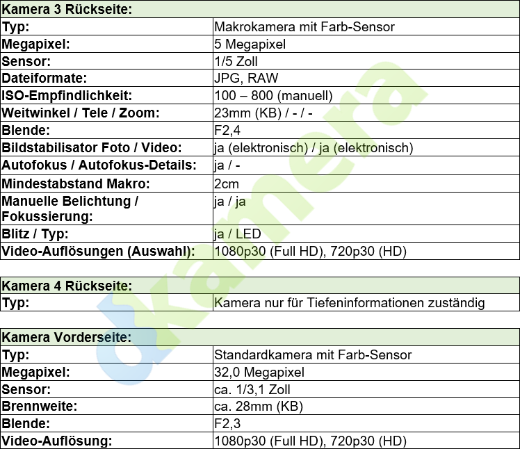 Die Kamera-Ausstattung des Xiaomi Redmi Note 9 Pro umfasst vier Kameras auf der Rückseite und eine Kamera auf der Vorderseite. Direkt ansteuerbar sind auf der Rückseite allerdings nur drei Kameras, die vierte Kamera speichert allein Tiefeninformationen. Mit diesen Daten wird unter anderem das künstliche Bokeh berechnet. Bei der Hauptkamera mit Weitwinkelbrennweite (25mm KB; F1,9) verbaut Xiaomi einen 64 Megapixel auflösenden Sensor der 1/1,72-Zoll-Klasse. Da standardmäßig vier Pixel zu einem größeren Bildpunkt „vereint“ werden, beträgt die Auflösung der Fotos in den meisten Modi 16 Megapixel. Für die automatische Fokussierung ist ein Phasen-AF zuständig. Als zweite Kamera steht ein Modell mit acht Megapixel und Ultraweitwinkelobjektiv (17mm; F2,2) zur Verfügung. Hier wird ein 1/4-Zoll-Sensor verwendet, Autofokus gibt es keinen. Die dritte Kamera dient nicht wie üblich zur Aufnahme von weit entfernten Motiven, sondern von nahen. Es handelt sich um eine Makrokamera mit fünf Megapixel und einem Chip der 1/5-Zoll-Klasse. Das 23mm-Objektiv besitzt eine Blende von F2,4, die Fokussierung ist bei Motivabständen von zwei bis zehn Zentimetern möglich. Auf der Vorderseite sitzt eine Kamera mit 32 Megapixel, 28mm KB-Brennweite und F2,3-Blende.