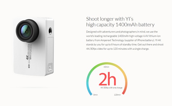 Der Akku der Actionkamera besitzt eine Kapazität von 1.400mAh, laut Xiaomi sind damit Videoaufnahmen mit einer Laufzeit von bis zu zwei Stunden möglich. Die Abmessungen der Kamera liegen bei 6,5 x 4,2 x 2,1cm, mit Akku wiegt sie 95g.
