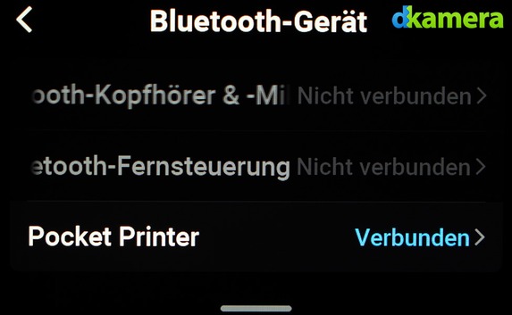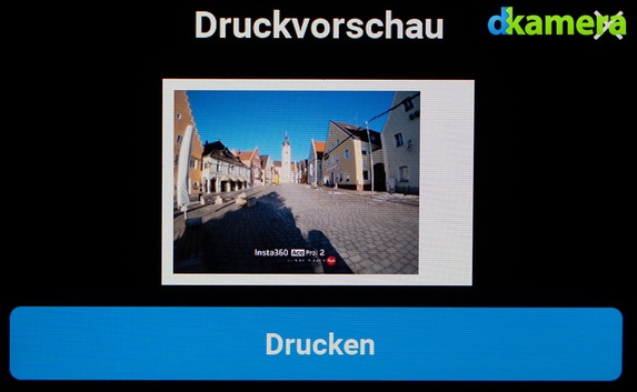 Der Drucker und die Ace Pro 2 werden über das Kameramenü verbunden, im Test funktionierte dies fehlerfrei und innerhalb weniger Sekunden. Drucken kann man sowohl neu aufgenommene Bilder als auch Aufnahmen, die sich auf der Speicherkarte befinden. Als Optionen stehen der randlose Druck und das Drucken von Bildern im Polaroid-Stil zur Wahl. Hier sind zudem ein Logo und die Aufnahmedaten zu finden. Der Druck erfolgt beim Pocket Printer mit dem ZINK-Verfahren (Zero Ink), nacheinander werden die Farben gelb, rot und cyan mittels thermischer Impulse erzeugt. Zudem gibt es eine abschließende Schicht, die das Bild widerstandsfähig macht.