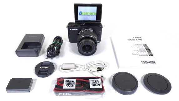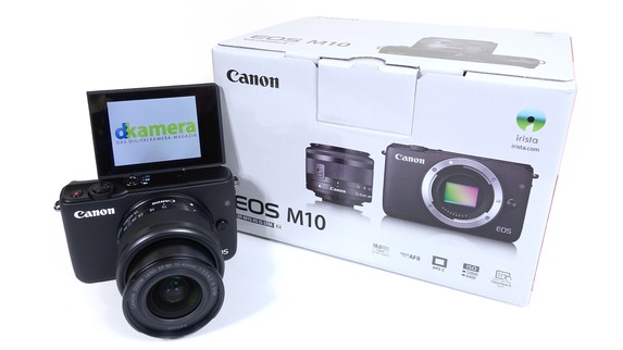 Für die Fotoprogramme gibt es kein eigenes Wählrad, die PSAM-Programme sowie eine Automatik lassen sich aber trotzdem verwenden. WLAN und NFC wurden zur drahtlosen Steuerung und Bildübertragung integriert. Im Kit ist die EOS M10 zusammen mit Canon EF-M 15-45mm F3,5-6,3 IS STM erhältlich.