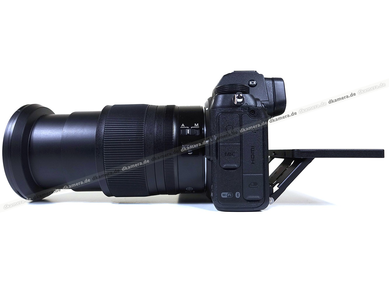 aus einem Fach an der rechten Seitenfläche entnehmen, der Akku findet in einem Fach auf der Unterseite Platz. Die Kabelschnittstellen befinden sich alle an der linken Seite. Neben einem Kopfhörerausgang und einem Mikrofoneingang besitzt die DSLM einen USB-C-Port, ein Mini-HDMI-Ausgang und ein Fernbedienungsanschluss. Zur drahtlosen Übertragung kommen WLAN und Bluetooth zum Einsatz, für die Datenübertragung und Fernsteuerung ist die bekannte SnapBridge-App verantwortlich.