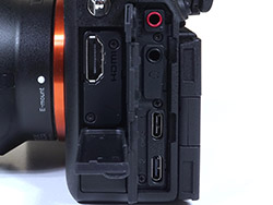 Alle Kabelschnittstellen werden bei der DSLM an der linken Seite erreicht. Neben einem HDMI-Ausgang stehen zwei 3,5mm Klinkenports (für Mikrofon und Kopfhörer) sowie zwei USB-C-Ports zur Verfügung.