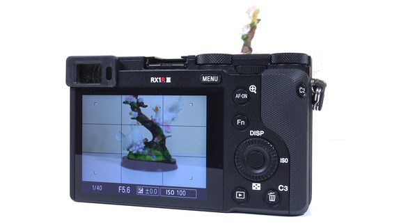 Das Handling des Gehäuses bewegt sich ohne Handgriff nicht auf dem höchsten Niveau, das sehr geringe Gewicht macht einen Griff jedoch nicht unbedingt notwendig. Als Zubehör bietet Sony zudem einen Daumengriff (TG-2) an. Bei der Bildkontrolle können sich Nutzer zwischen dem Sucher und einem Display entscheiden. Der Sucher gehört zu den kleinen Modellen, reicht für die meisten Aufgaben allerdings aus. Das Display der Sony RX1R III punktet mit einer sehr hohen Auflösung, der Verzicht auf eine dreh- oder schwenkbare Aufhängung schmerzt jedoch. Die Sony DSC-RX1R III (Praxis)