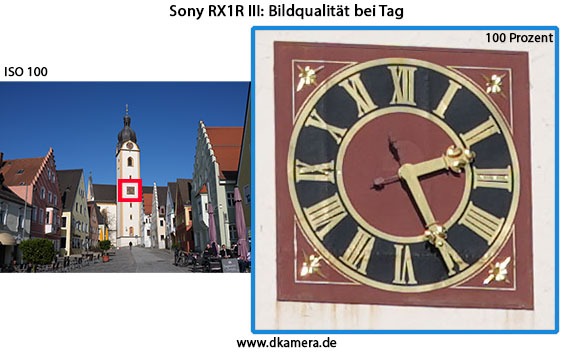 ist keine „gewöhnliche“ Kamera, sondern Sonys High-End-Modell in der Kompaktkameraklasse. Das Wort „kompakt“ trifft dabei eindeutig zu. Die RX1R III ist für ein Modell mit Vollformatsensor richtig klein (11,3 x 6,8 x 8,8cm) und sehr leicht (496g). In Relation dazu fällt die Bildqualität herausragend aus. Das gilt aber nicht nur für diesen Fall, sondern auch im Vergleich zu allen anderen Kameras mit Vollformatsensor. Der große Chip und die hohe Auflösung (60 Megapixel) ermöglichen Fotos der höchsten Güteklasse. Etwas höhere Sensorempfindlichkeiten stellen in der Praxis ebenso kein Problem dar, bis ISO 3.200 sind nur recht kleine Qualitätseinbußen hinzunehmen. Das volle Potenzial des Sensors lässt sich bei der Sony RX1R III allerdings nur mit abgeblendetem Objektiv ausschöpfen. Bei Offenblende (F2) sind die Bildränder nur bedingt scharf, eine kleinere Blende ist für die beste Qualität notwendig. Schade finden wir auch den Verzicht auf einen optischen Bildstabilisator. Natürlich lässt sich an dieser Stelle anführen, dass Fotografen bei einem Objektiv mit 35mm ohne Stabilisator auskommen können. Wegen des hochauflösenden Bildwandlers würde dieser der Kamera jedoch sehr guttun.