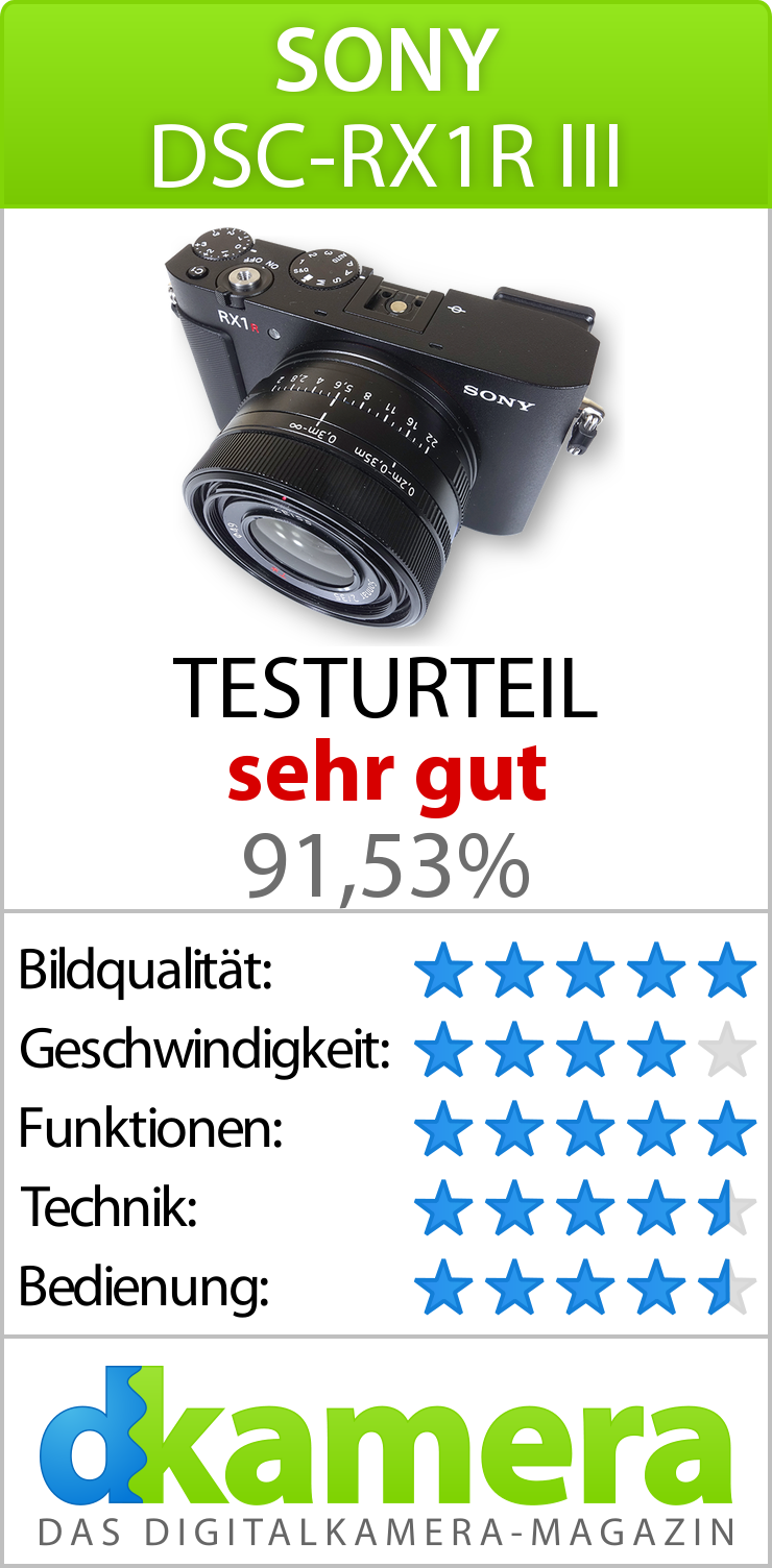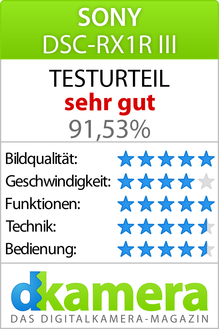 Durch Anklicken erscheinen alle dkamera Urteile zur Sony DSC-RX1R III in großer Druckansicht.